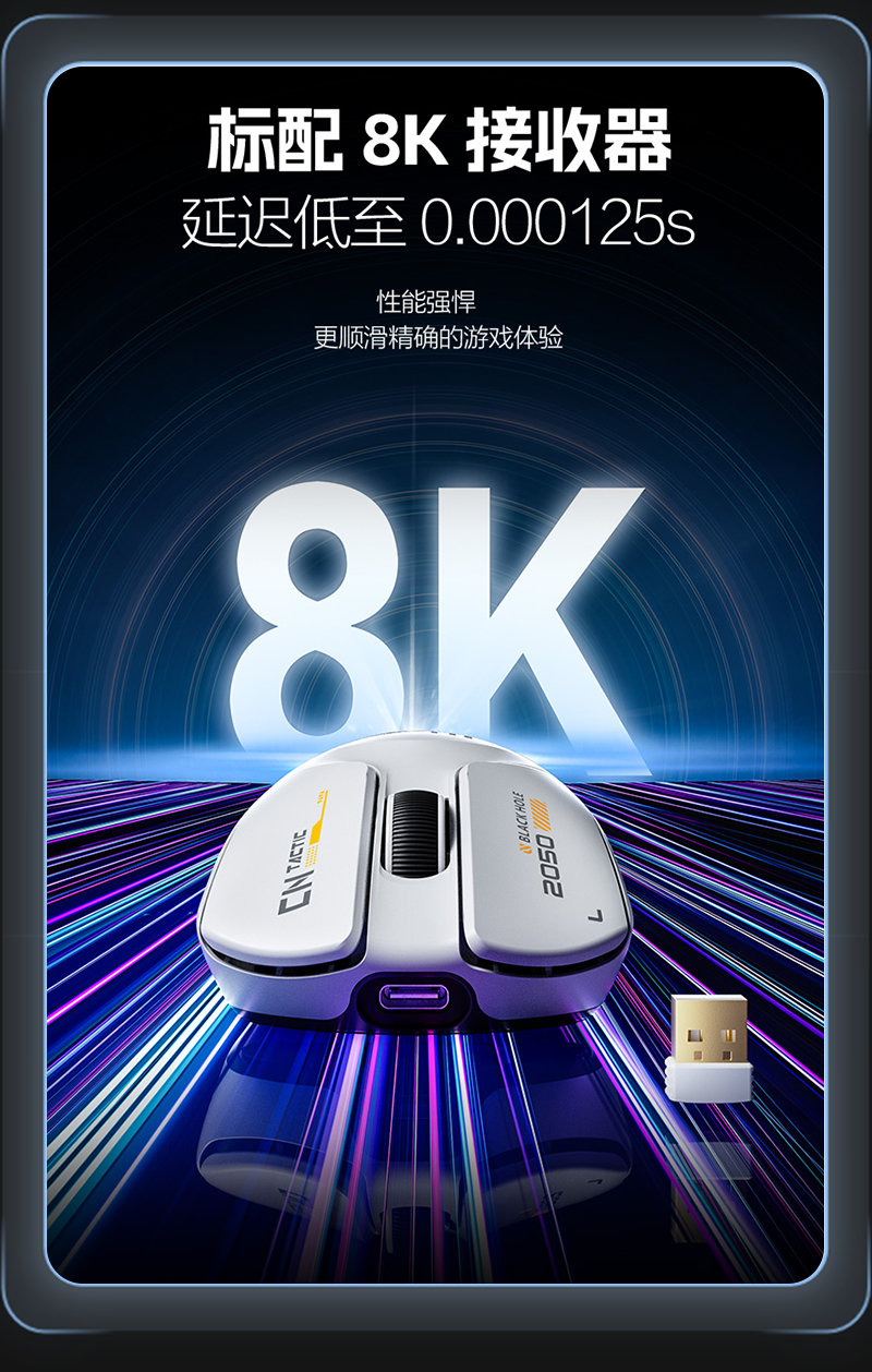 标配8K接收器,延迟低至 0.000125s